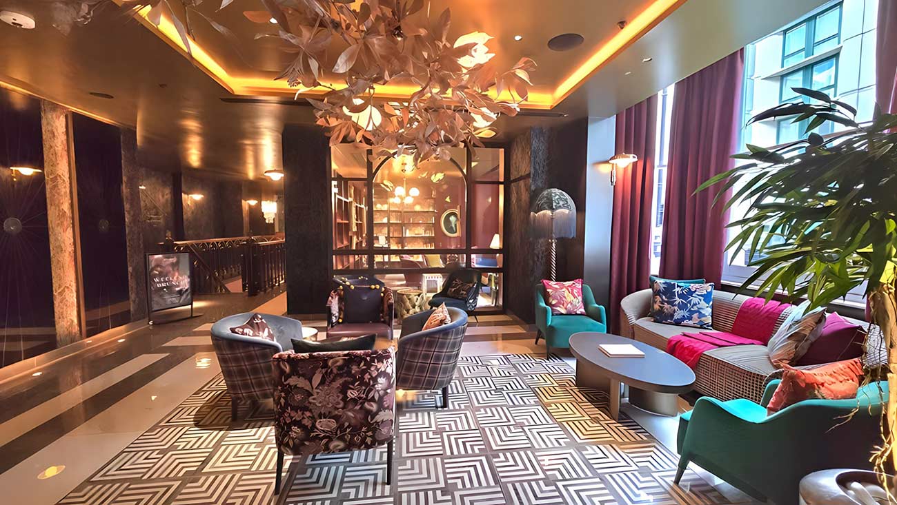 From the moment you enter its emerald-hued lobby — wrapped in velvet textures and surrealist décor — you’re transported into a whimsical British fantasy. Designed by Bergman Interiors, the aesthetic is rich, bold and cheekily flamboyant, nodding to the city’s theatrical flair and queer sensibilities.